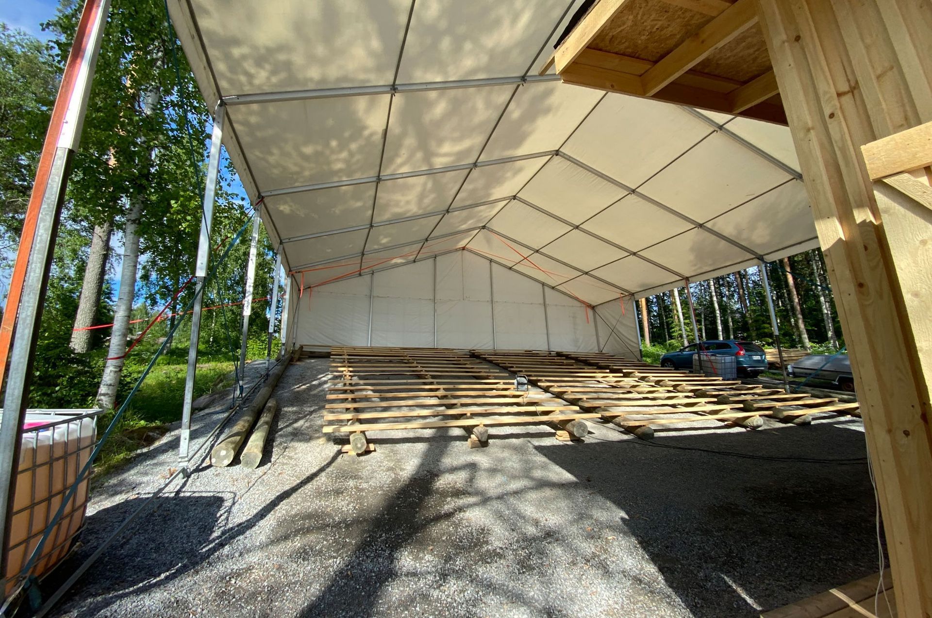 Kylätalon mittava peruskorjaushanke on edennyt suunnitelmien mukaan ja keväällä 2022 alettiin rakentaa näyttämöä ja katettua 400 katsojan katsomoa. Istuinlankut sahattiin paikalta kaadetuista hongista ja kylän kirvesmiehet loihtivat pystyyn näyttämön, jonka suojissa ammattilaiset pääsivät näyttämään taitojaan.